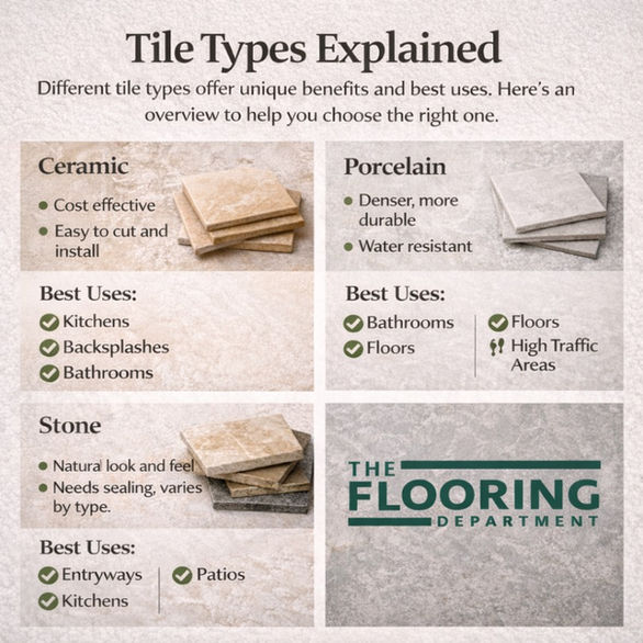 Tile flooring is a smart choice for any home or business thanks to its durability, low maintenance, and water resistance.